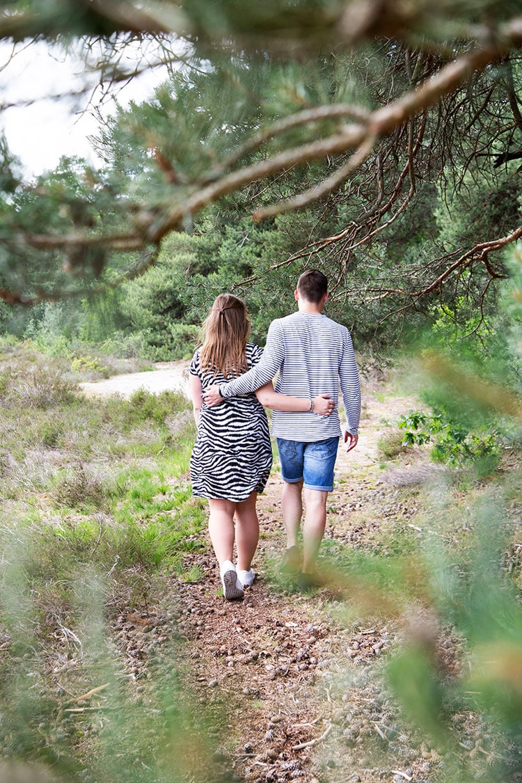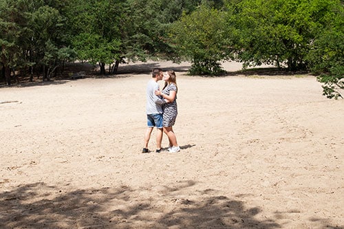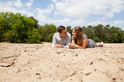 Samen liepen we door de mooie natuur heen. Ik vroeg aan ze wat ze graag zouden willen. Ze wilden graag spontane, leuke foto’s. Niet te klef maar wel leuk samen. Ik vroeg ze of ze door het zand wilden rennen, rollen en liggen en gelukkig vonden ze dat helemaal geen probleem. Dat levert namelijk die leuke spontane foto’s op!